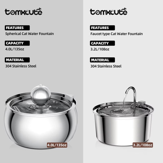 304 Stainless Steel Pet Water Fountain 4L/135 Oz with Faucet Silent Filter Automatic Dog Water Fountain Live Water Circulation